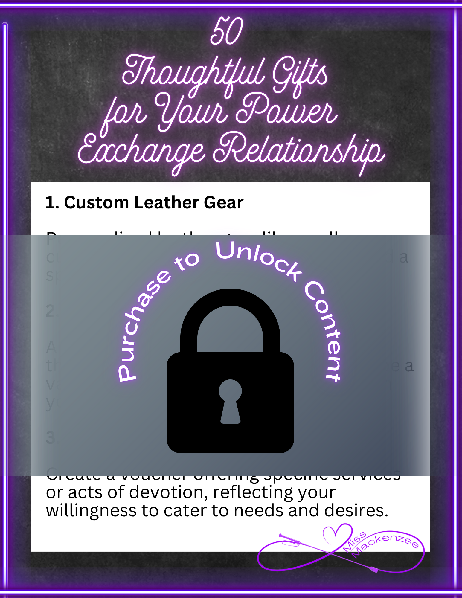 Elevate the depth of your power exchange dynamic with "50 Thoughtful Gifts for Your Power Exchange Relationship"—an essential 11 page digital guide crafted to inspire and enrich your unique bond. This carefully curated eBook offers a treasure trove of gift ideas designed to honor and celebrate the intricate connection between Dominants and submissives.