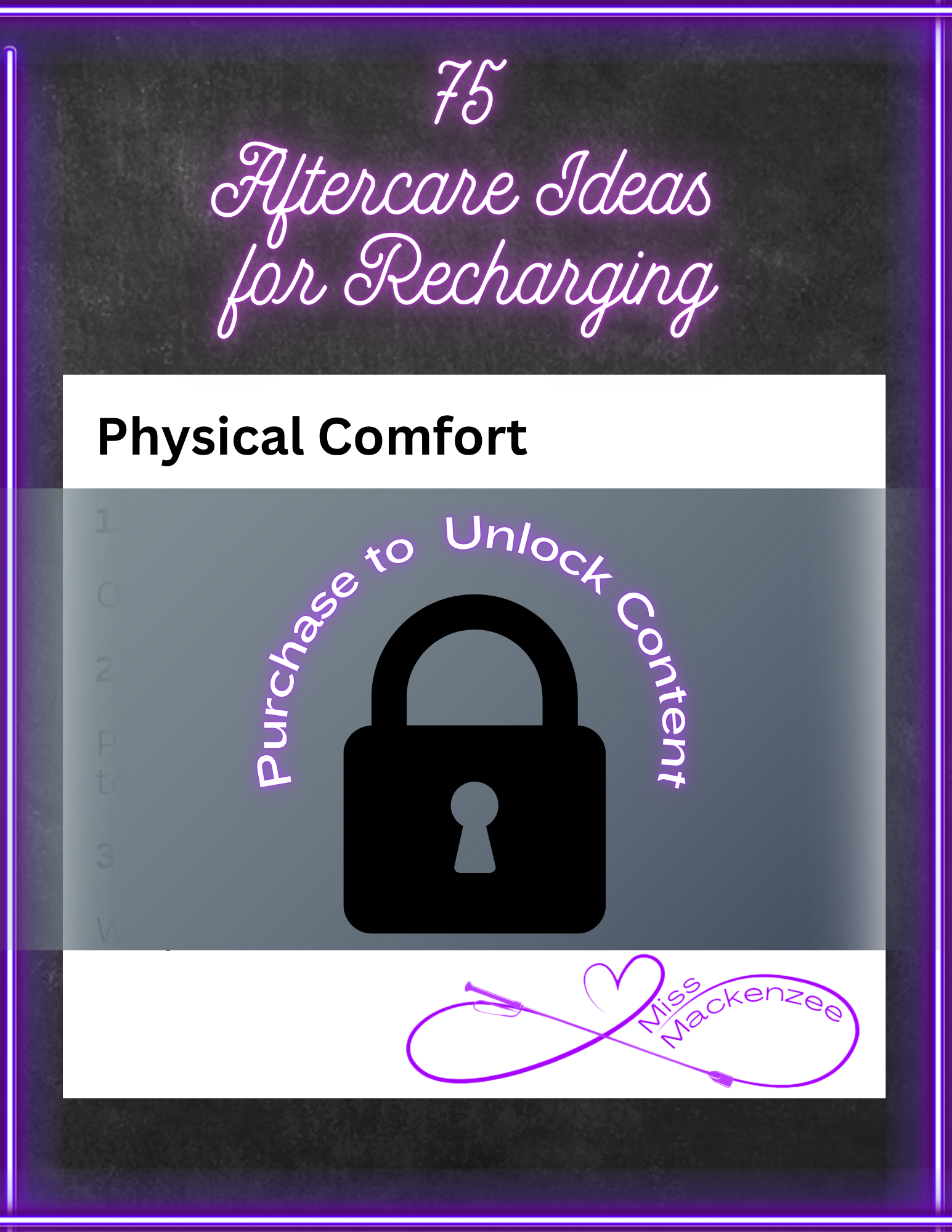 Transform your aftercare routine with "75 Aftercare Ideas for Recharging." This digital download is your ultimate resource for discovering thoughtful and effective ways to provide comfort, support, and reconnection. Start exploring and implement practices that will help you and your partner recharge and strengthen your bond today!